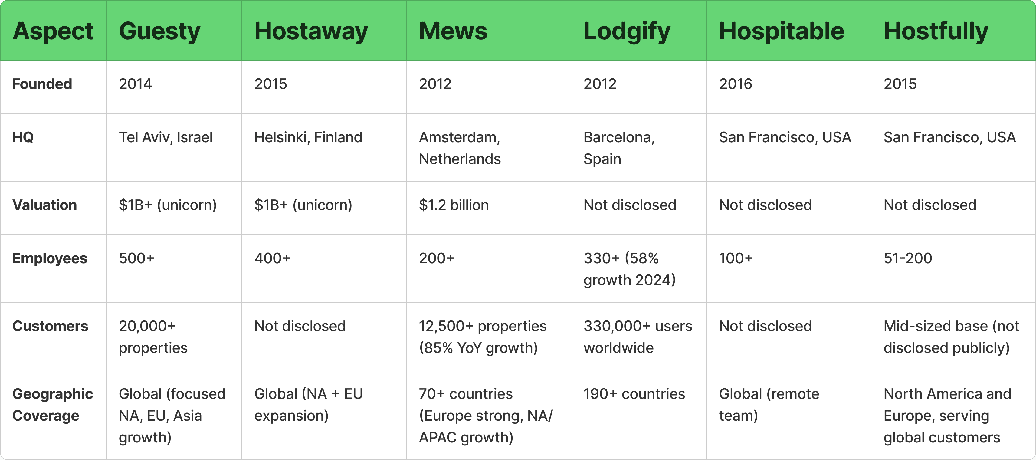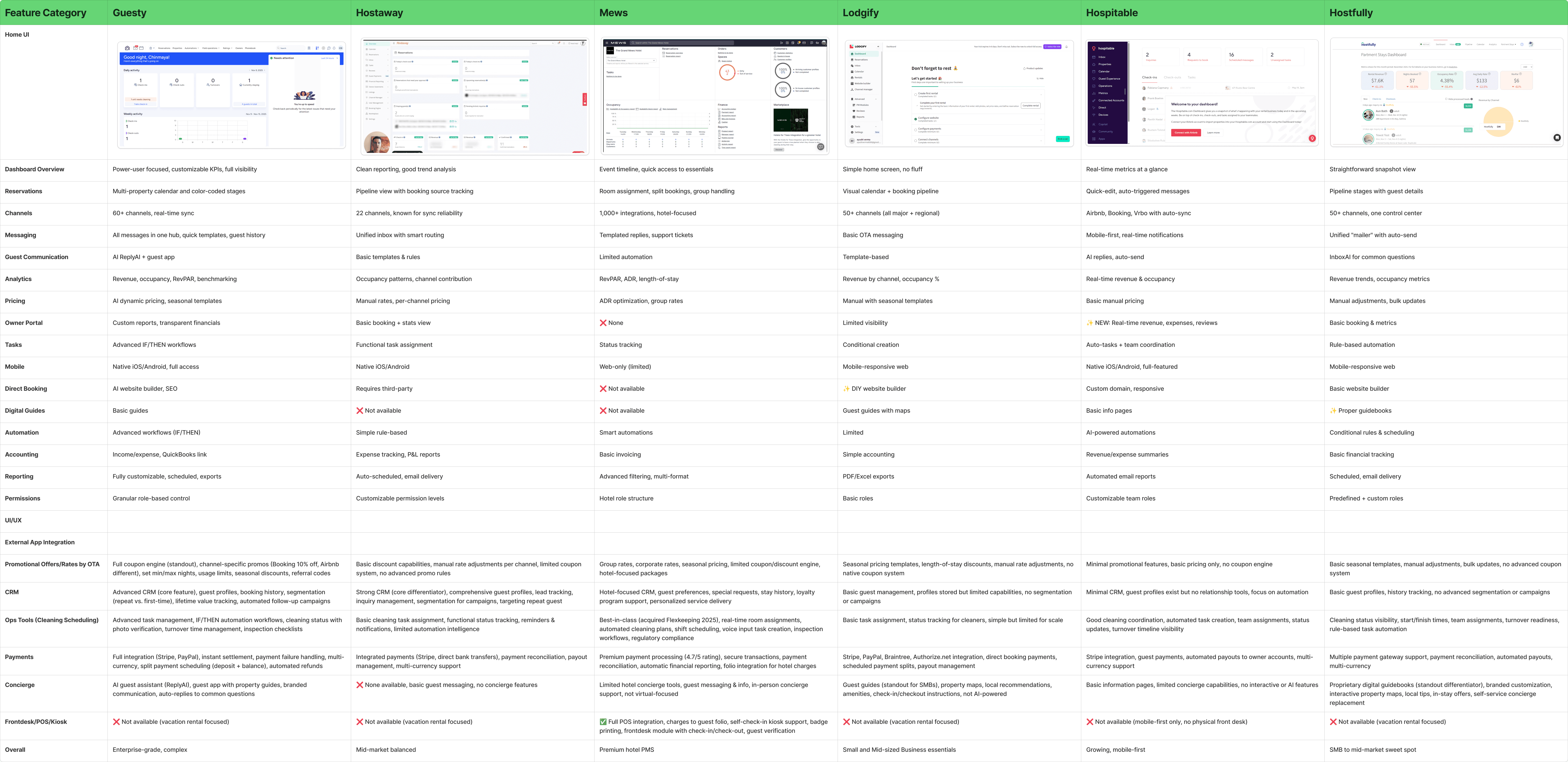 This competitor matrix compares leading PMS platforms across core workflows, showing where each tool is strong and where it still relies on fragmented or manual processes.