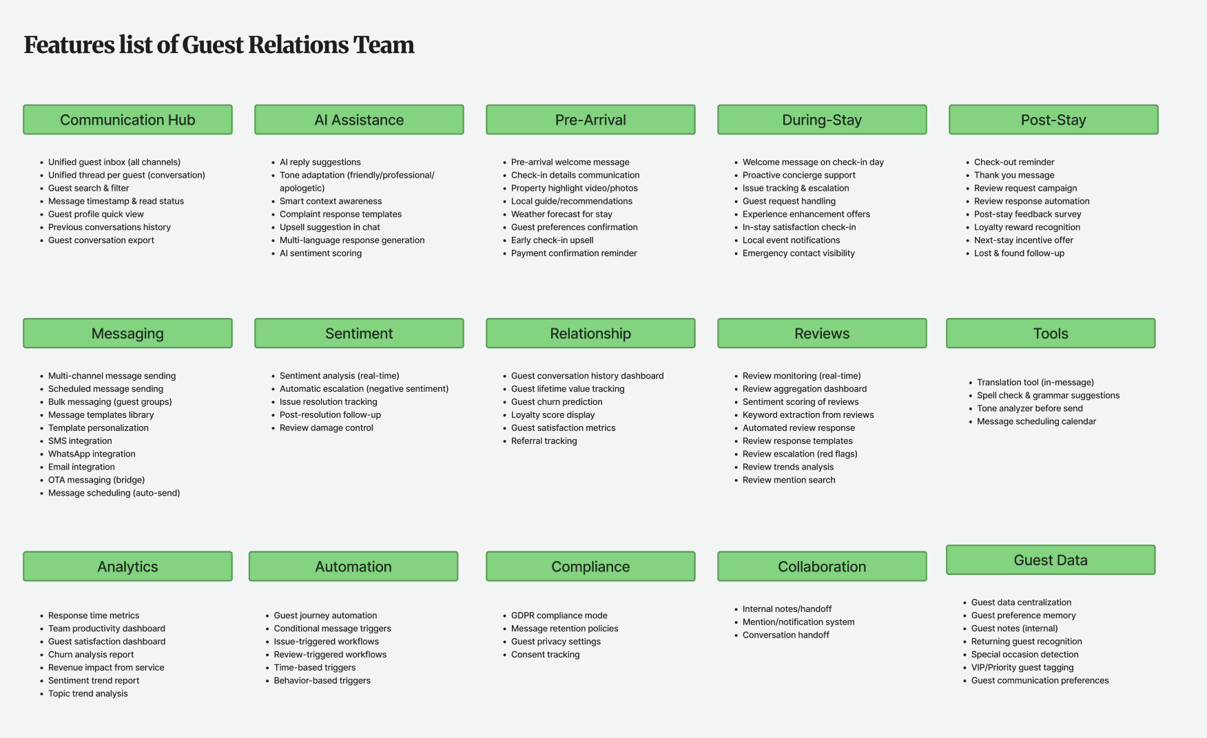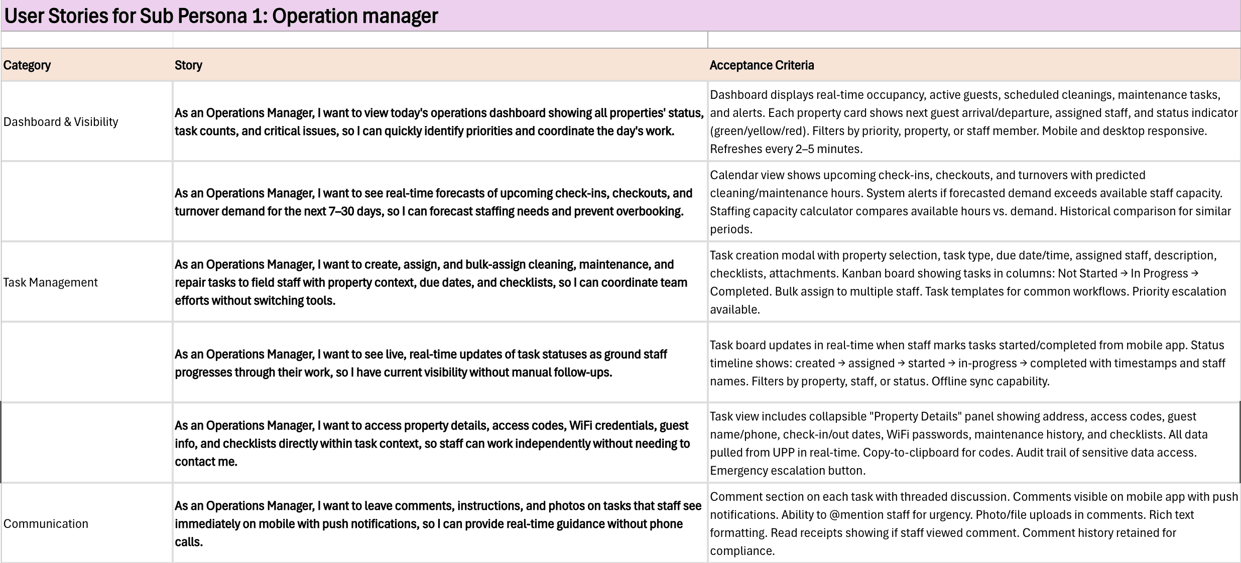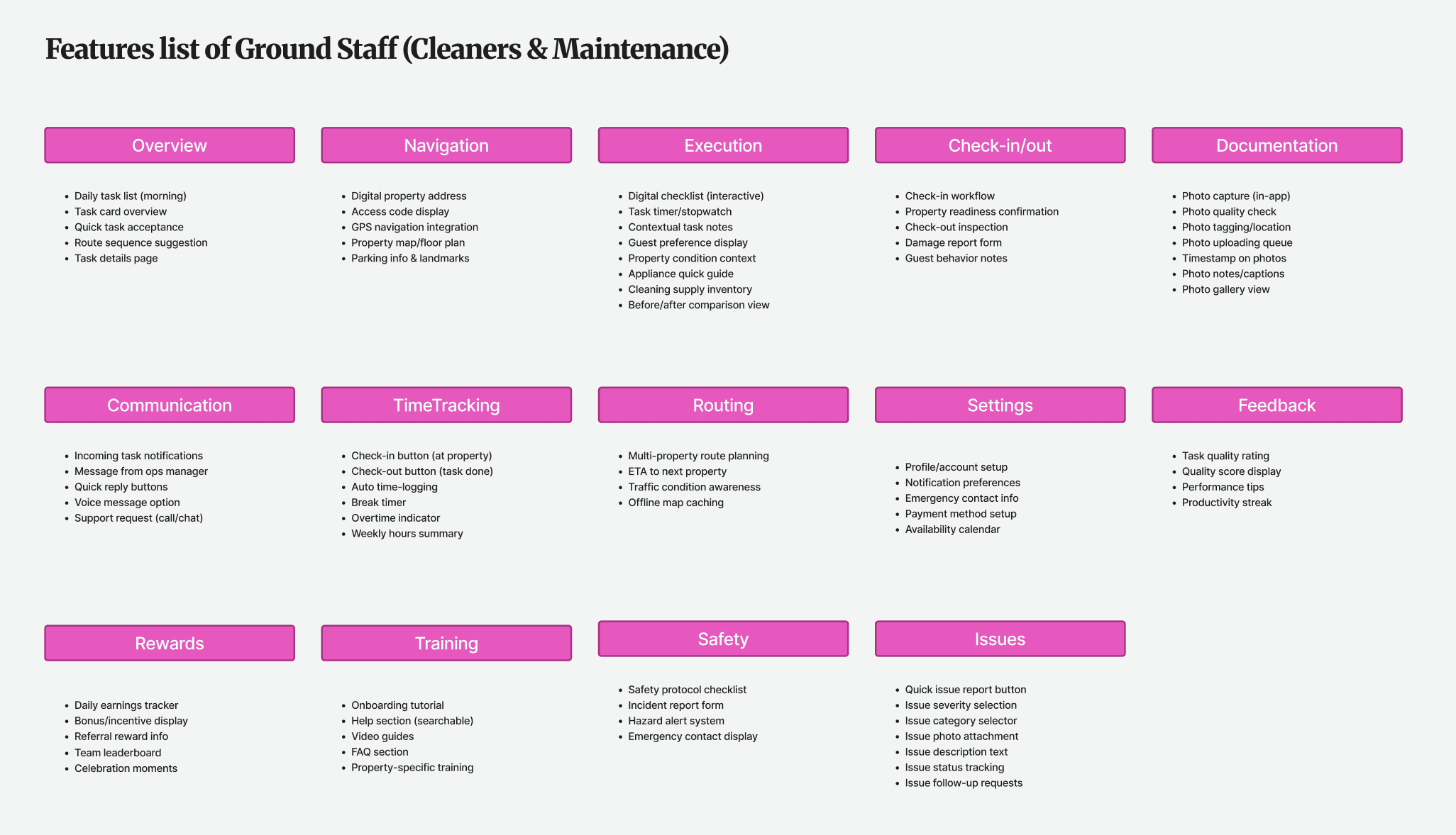 Translated the research into user flows, feature mapping, and a scalable product structure for property managers, staff, and owners.